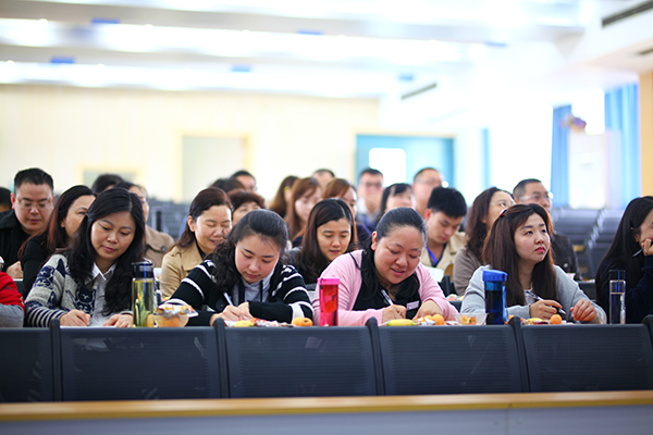 4月27日,我校全体数学教师齐聚五楼阶梯教室,参加了本学期的数学培训活动,在梅校长的引领下,大家一起走进“国基教育大讲堂”,欣赏袁晓萍老师的讲座——向孩子借智慧,大家收获颇多,感悟到教师应放低姿态,成为课堂中的观察者和倾听者。
