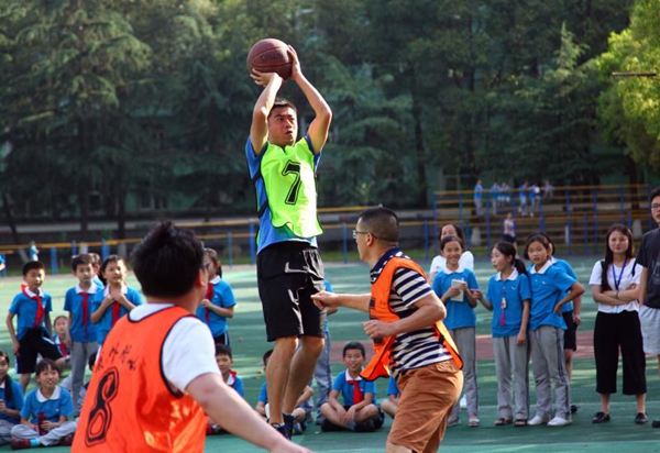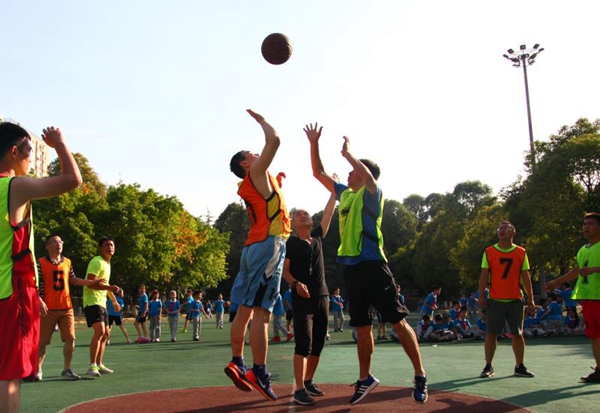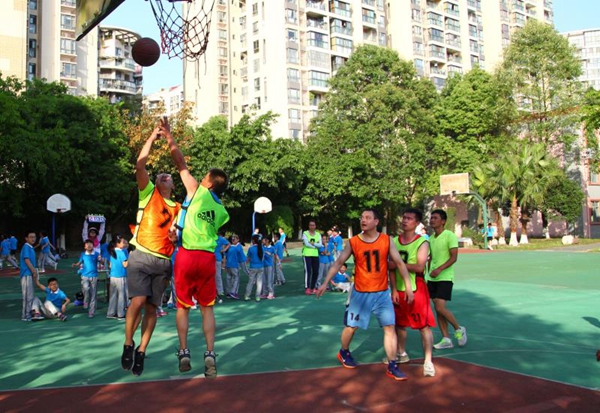 5月16日,我校教职工篮球赛在热烈的气氛中举行,体育老师队和教学老师队进行了激烈的对抗。老师们精湛的球技赢得了同学们阵阵热烈的掌声。