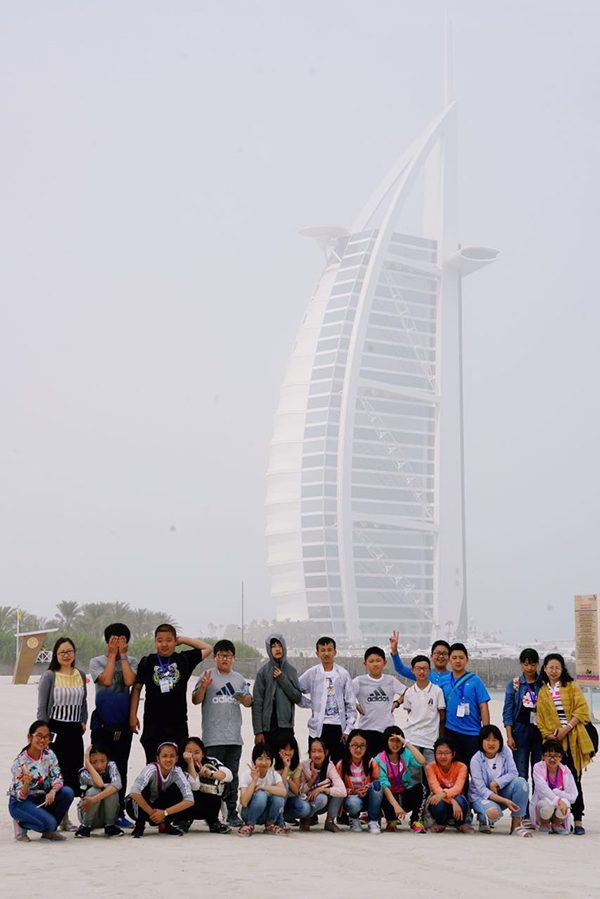 当地时间7月11日,成外附小暑假赴英国游学一团的孩儿们告别英伦,到达沙漠绿洲—阿联酋,开启为期三天的异域之旅!远观迪拜七星帆船酒店,然后乘坐轻轨参观世界最大的人工岛~棕榈岛以及岛上的亚特兰蒂斯酒店!午饭后来到世界最大的购物中心~Dubai Mall参观购物,观看喷泉和世界最高的塔~哈法利塔!