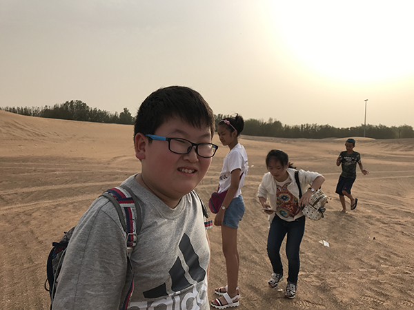 当地时间7月12日上午,成外附小暑假赴英国、迪拜游学一团的孩儿们酒店早餐后,前往游览古老艺术区巴斯塔吉亚,感受迪拜最古老的文化。参观完后,坐水上的士参观黄金香料市集。午餐后,我们前往沙漠,上一堂户外的文化课 - “沙漠冲沙”,冲沙之前,导游详细讲解有关阿联酋的历史和文化。沙丘烫得不敢下脚,越野车像大海浪峰上的冲浪板带着我们在沙丘间跃上冲下,还不时来个急停飘移……惊险刺激中,孩儿们不时尖叫大笑,热也不热了,累也不累了!傍晚,我们在沙漠中围坐,空旷的沙漠中响起喃喃的阿拉伯人的吟唱,主人们为客人表演充满异域风情的阿拉伯歌舞、魔术、刀剑、火术……孩子们边享受阿拉伯风味烤肉、馕饼、炸鸡,边观看精彩的演出。这,是完美的一天!