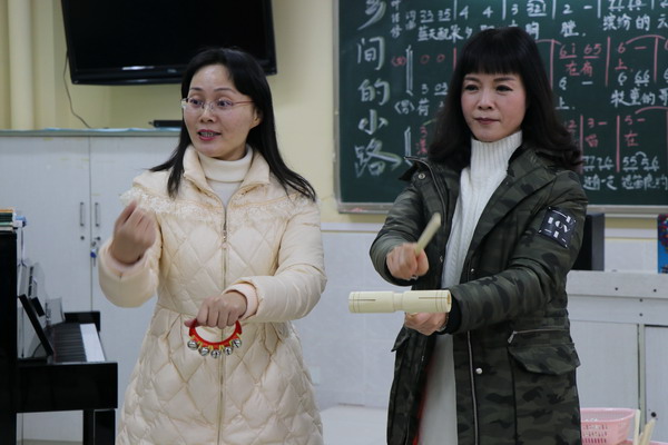 由音乐组老师们共同执教的教师课堂开始啦!今天,这里只有认真的音乐老师和可爱的“小学生”。在老师的引领下,同学们从对音乐的感知、体验,模仿、探究再到表现,创造,大家一步一步参与体验音乐活动的成功和快乐。真实的体验,让我们真正去看见学生内心,并以学生的视角来指导今后的教育教学实践。