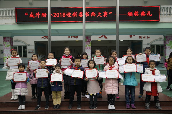 1月22日,我校举行“2018迎新春书画大赛”颁奖典礼。梅校长、曾校长、何助理等学校领导为获奖同学颁发奖状,孩子们个个喜笑颜开!至此,本次书画展圆满成功!感谢同学们的刻苦努力,感谢家长们的大力支持,感谢老师们的辛勤付出!愿孩子们从这里起航,实现自己的艺术梦想!