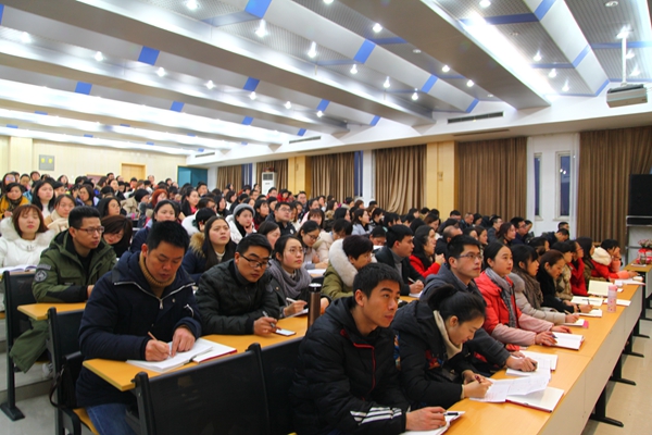 22日晚,我校在五楼阶梯教室召开期末全校教师大会。