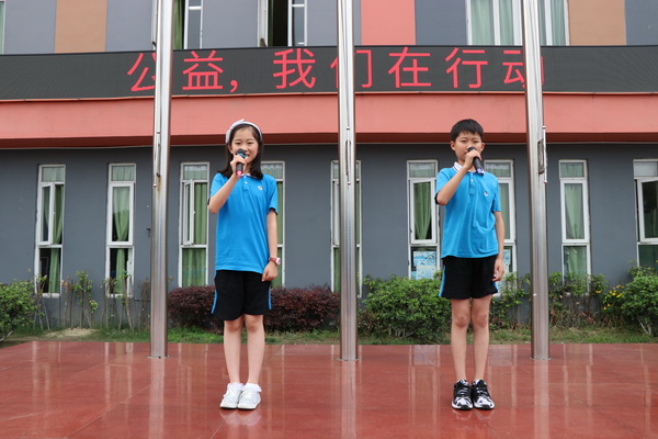 5月21日,我校以“公益,我们在行动”为主题,举行第十二周集体朝会。平时,同学们经常利用课余时间做公益:去贫困山区看望小朋友们,去敬老院帮助老人,帮助自闭症儿童等等。下周,我们将庆祝六一儿童节,活动中将进行义卖活动,所得款项将捐给成都大熊猫繁育基地,用以帮助大熊猫和其他一些濒危动物。