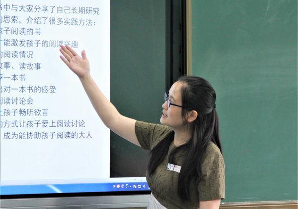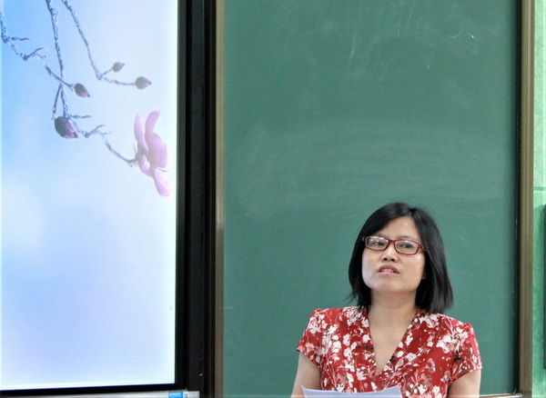 3.Ms.Jiang Li was sharing how her class operated the reading party of Heroes of the Marshes