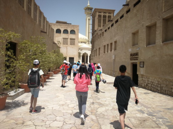 6月19日,同学们在酒店用完早餐后,前往游览古老艺术区巴斯塔吉亚,感受迪拜最古老的文化。随后,坐水上的士参观黄金香料市集。午餐后,前往沙漠,上一堂户外的文化课 —— “沙漠冲沙”,在冲沙之前,导游详细讲解了有关阿联酋的历史和文化。晚上,前往沙漠中的营地,骑骆驼,看表演,吃风味烤肉。