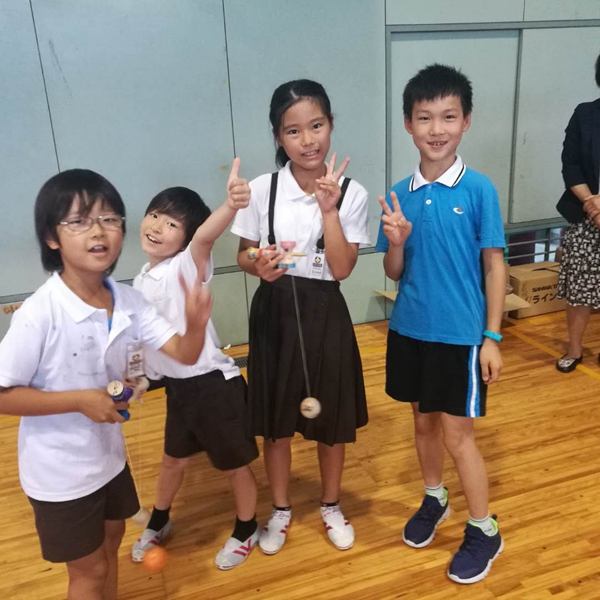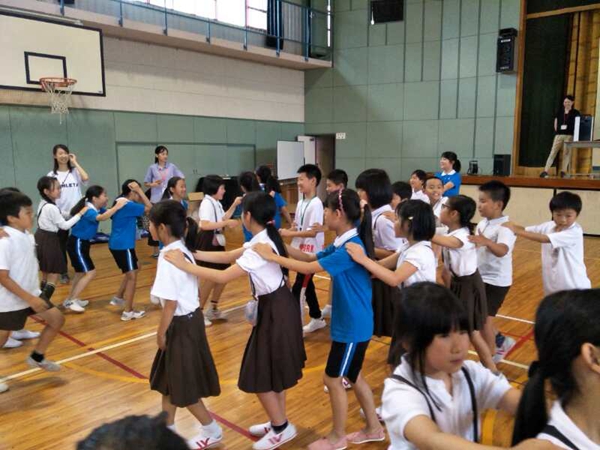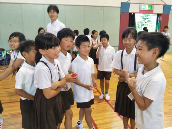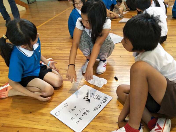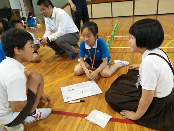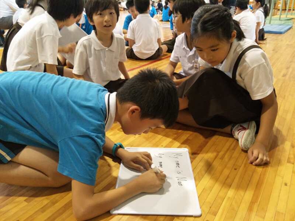 We divided into small groups to communicate with Japanese children using English, gestures and writing.