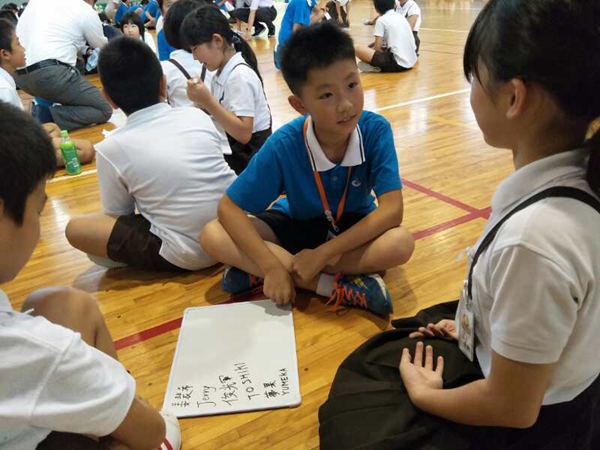 我们分小组与日本孩子进行近距离交流,英文、手势、涂写都用上了