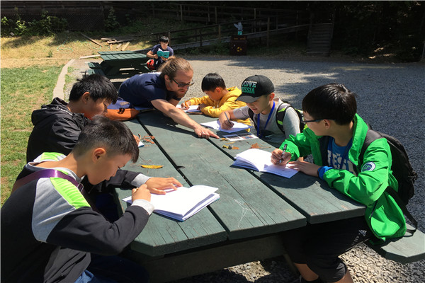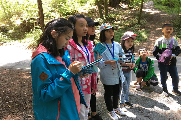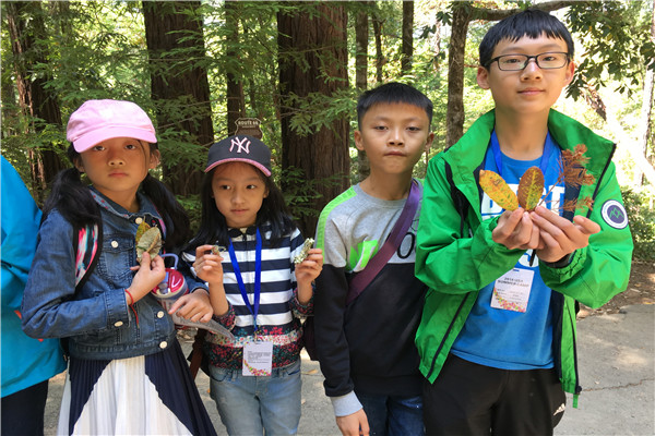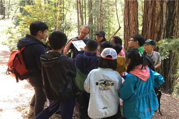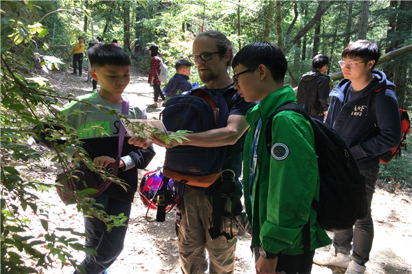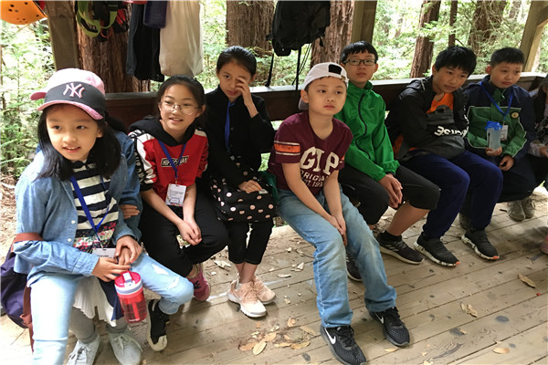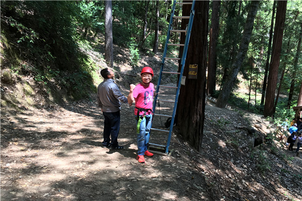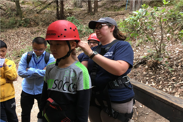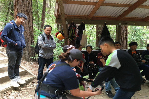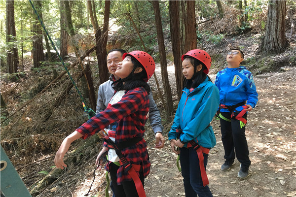7月3日上午,美国游学团的孩子们来到了丛林滑索处。