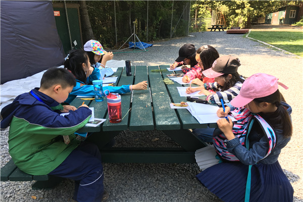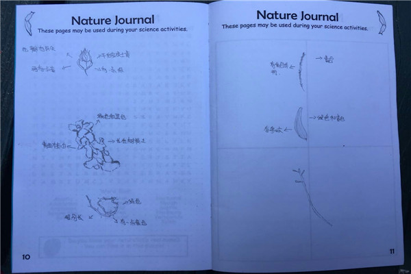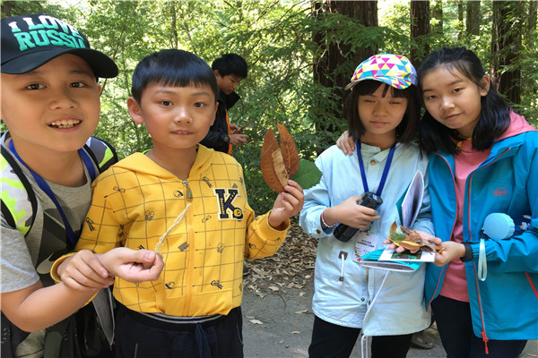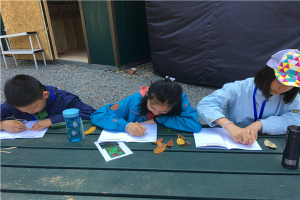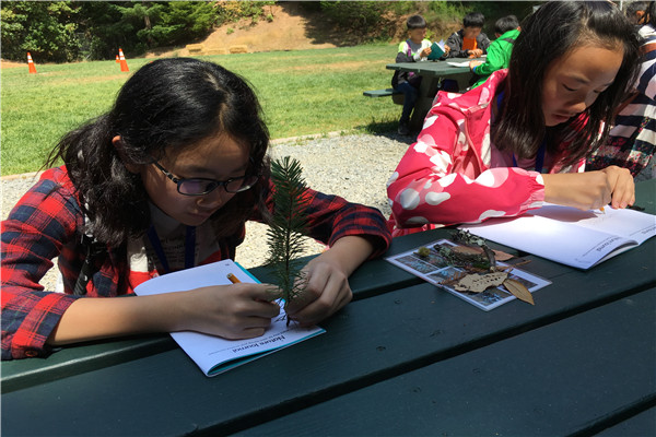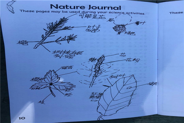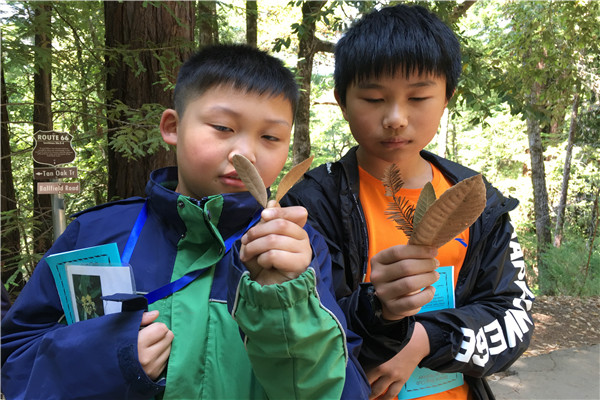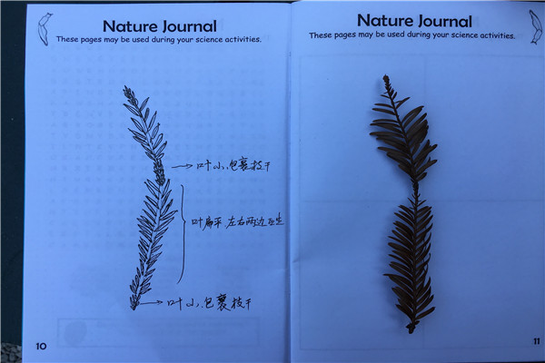 In the afternoon, children went to the forest, they found and identified the plants in the redwood forest area. The children found many different kinds of plants according to the teacher's task card. The children drew the observed features from a plant they found, and they drew them in great detail.