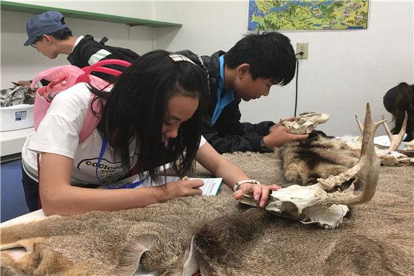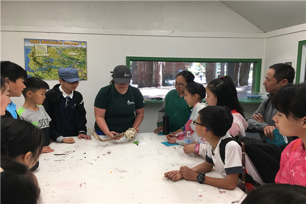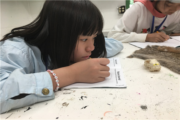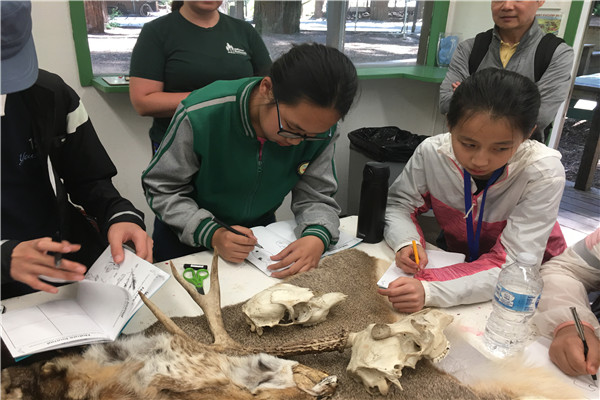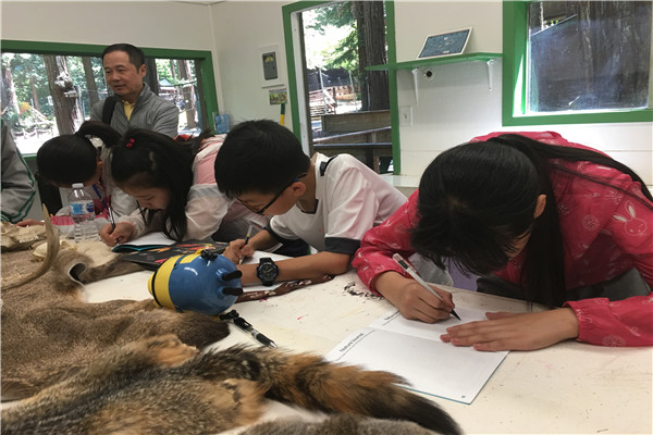 In the afternoon, the animals ' bones and fur were facsimiled and then the teeth were drawn by the children themselves, so that they had a better understanding of how to distinguish herbivores from predators through this real scene. Finally several animals were facsimiled. We also played the games by asking questions to guess what the animals were in the card, as well as the food chain game, so that the children had a better understanding of why there were so many species of small animals in redwood forest and animals with extremely high environmental requirements.