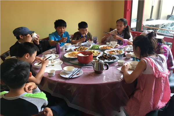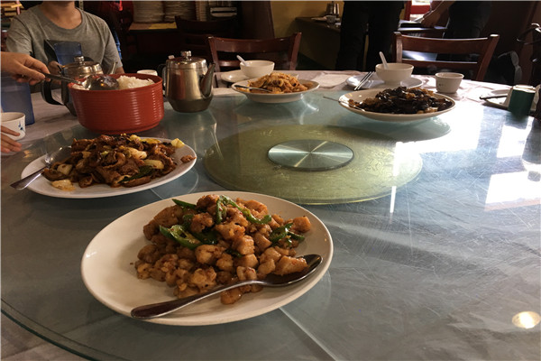 中午的中餐味道地道,凉面瞬间抢光,门口的招牌更是亲切。