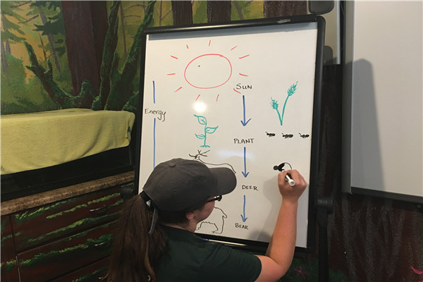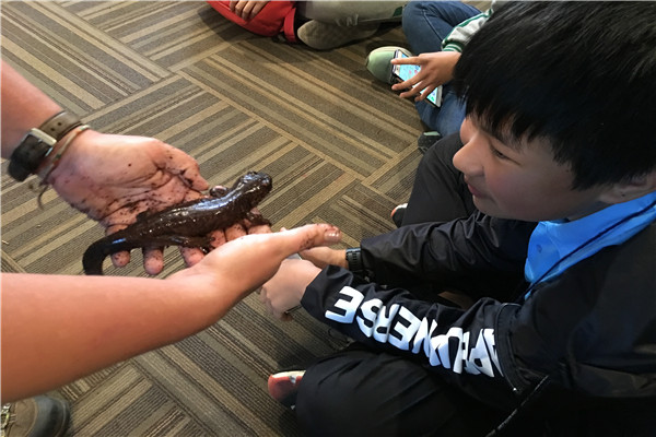 下午亲临动物的牙齿骨骼、皮毛,再通过画牙齿,孩子们通过这真实的场景对如何区别食草动物食肉动物有了进一步的了解。最后还亲临了几种动物,还玩了通过问问题猜卡片中的动物,以及食物链的游戏,孩子们对红杉林为什么有这么多种类的小动物,和对环境有极高要求的动物有了更进一步的了解认识。