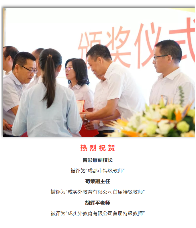 成实外教育庆祝教师节暨首届特级教师表彰大会
