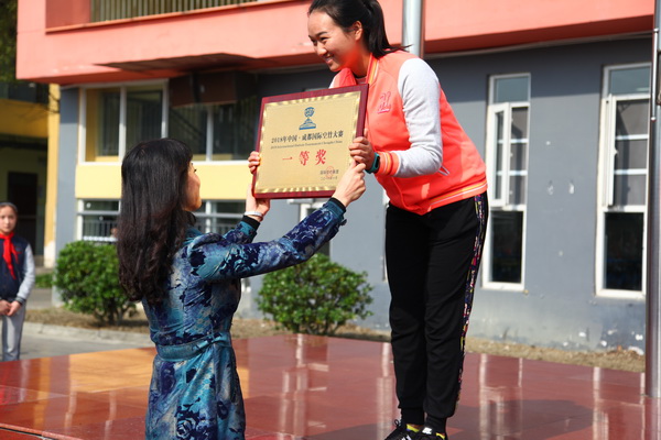 我校领导为在“中国成都国际空竹大赛”中获奖的同学和老师颁奖