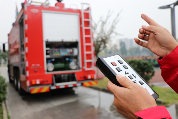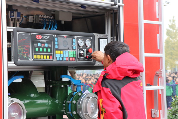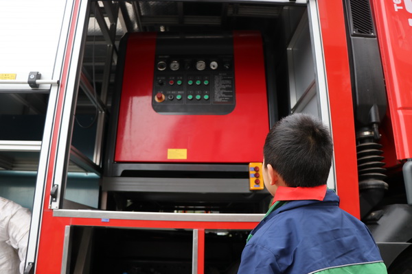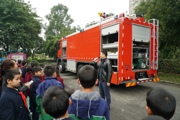 四川川消消防车辆制造有限公司区域总监“龚睿”叔叔为同学们讲解消防车的种类和应用