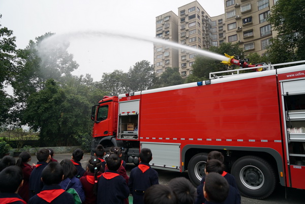 “消防安全 从我做起”,为了解火灾事故的危害、掌握简单火灾的预防知识、懂得常见火灾的自救,提高同学们的消防安全意识。今天,我们通过2.7班叶祉禅同学的家长,有幸邀请到了“四川川消消防车辆制造有限公司”的区域总监“龚睿”叔叔、培训技师“唐运定”、“姚辉”叔叔,来为我们培训消防安全的相关知识。在专业人员的讲解下,同学们了解了火灾的预防和火灾来临时的自救方法,还了解了消防车的种类和应用,观看了消防车灭火演示,受益匪浅。