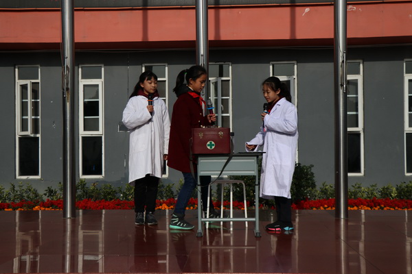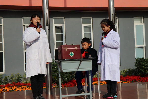 五年级的同学表演情景剧:《保健室里的那些事儿》