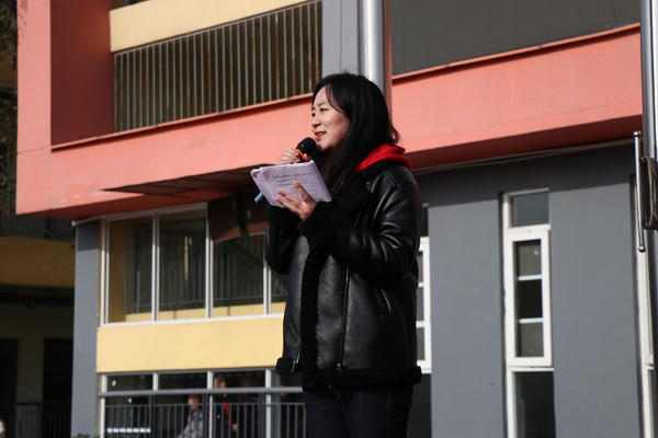 德育处黄老师宣布上个月获得“美丽教室”的班级名单