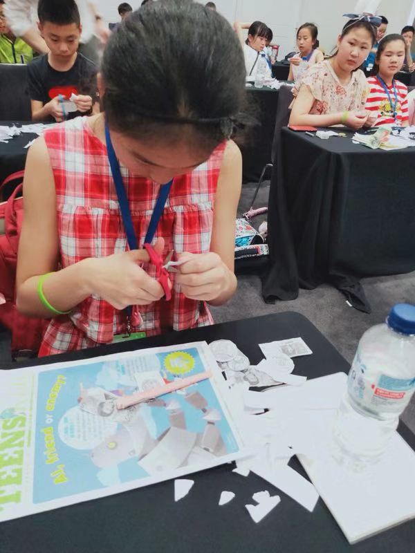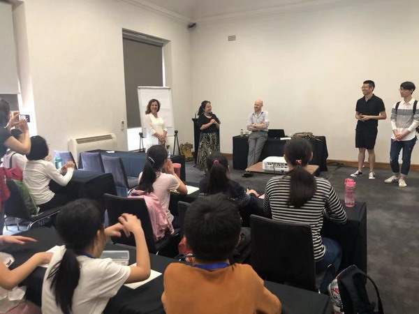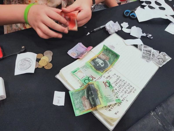 Daniels首先给孩子们每人分发印有澳洲钱币的资料,教孩子们认识所有的澳币,然后以剪下的澳币打赌的形式将每个孩子卷入其中,判断猜测上台孩子描述自己经历的正确性。为孩子们创设更多使用语言交流的机会。加速孩子们用英语思维的能力。接着给每个孩子分发了十张图片,使用英文认识,再发了一张写有这十张图片的澳洲文字,让孩子们将图片贴在相对的澳洲文字旁边,孩子们绞尽脑汁,使用现代工具帮助,猜测与英语发音的联系等各种方法积极参与努力完成任务,在完成的过程中实现了音形义的完美结合,孩子们也收获满满。接着是Marlene Mathew给孩子讲授澳洲的宗教文化,澳洲是一个宗教自由的国家,基督教、天主教、印度教、犹太教、伊斯兰教和佛教等等在澳洲相融并存。人,确实需要一种信仰,发自内心的信仰力量,会让我们在漫长的人生旅途中更加淡定,更加从容。希望大家能够找到自己的信仰,做一个有灵魂、有信仰的人!