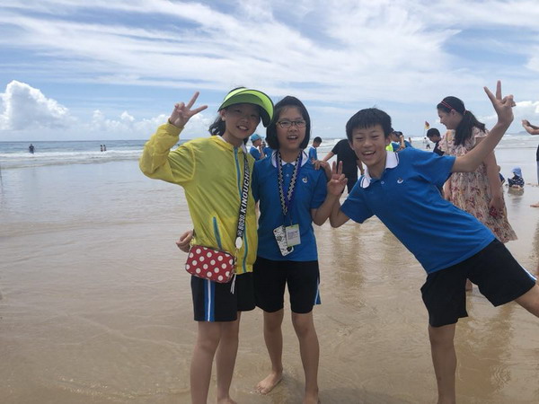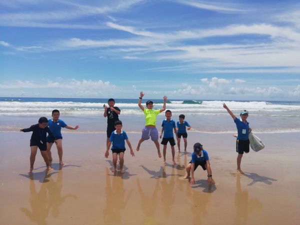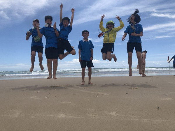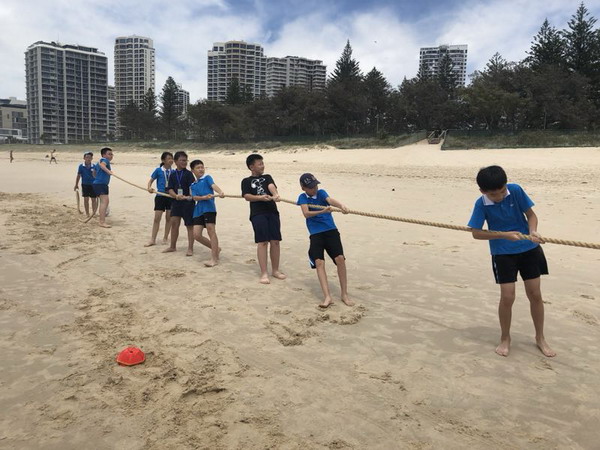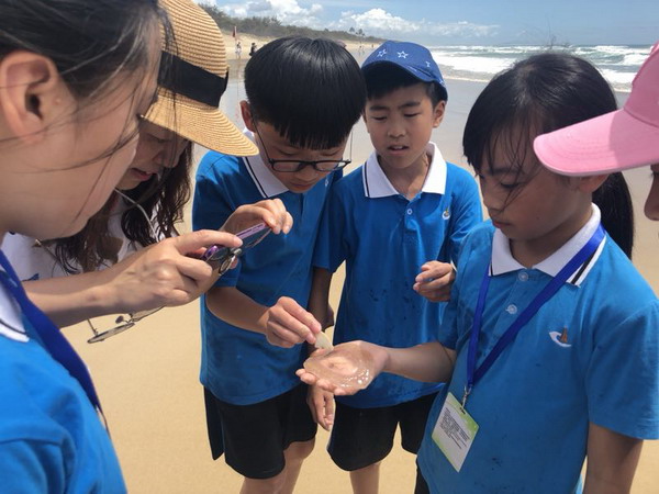 早上收拾好行装我们来到冲浪天堂Gold Coast。长长的海滩附着着刚刚涌上的海水,再映照着蓝天,如同天空之境一般,美丽,着迷!孩子们在海边踏水、堆城堡,寻找被海水冲上岸的水生动物。小朋友的收获可不小哟,有晶莹剔透的水母、海边的小贝壳、躲藏在海沙里的小海蛇、寄居蟹、海螺……