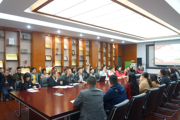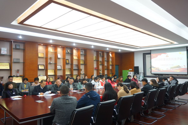 3月13日,我校党支部在三楼会议室召开新学期全体党员大会。会上,党支部曾彩雁书记先对党支部上学期工作进行总结并肯定了全体党员的工作成绩,对新学期党建工作进行了部署。然后,党支部宣传委员朱珊珊主任以“深入学习习总书记在庆祝改革开放40周年讲话精神有感”为主题,生动的给全体党员上了一堂主题党课。随后全体党员就刘健康同志加入中国共产党进行了讨论表决,最后全体党员进行了民主评议。