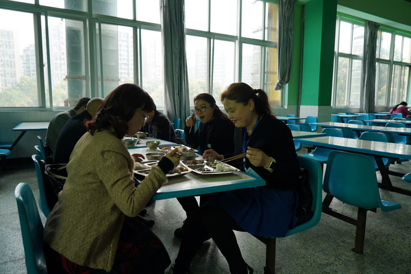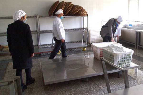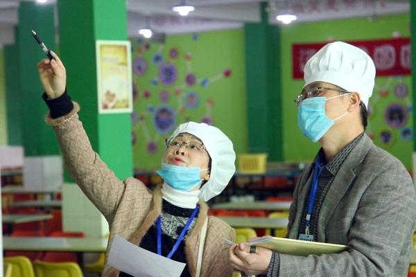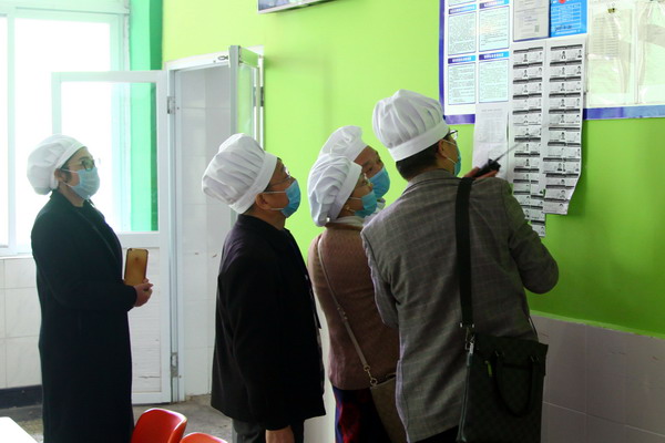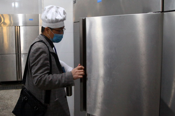 到校后5位督学分别对食堂和学生公寓进行检查。