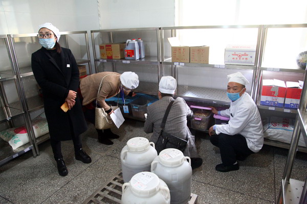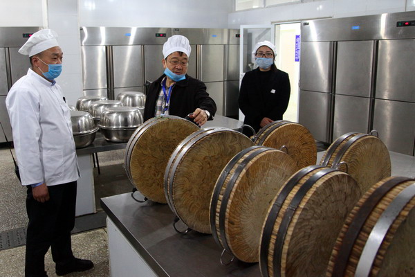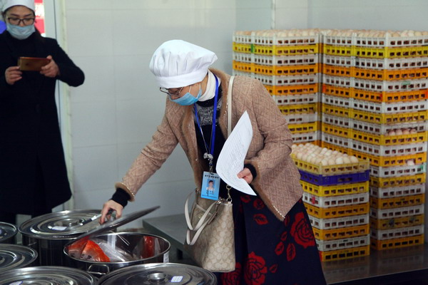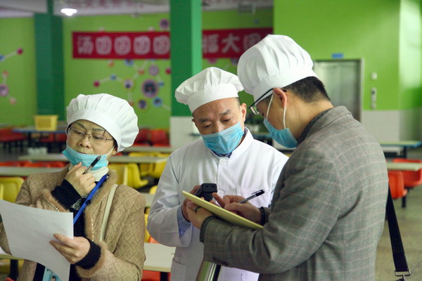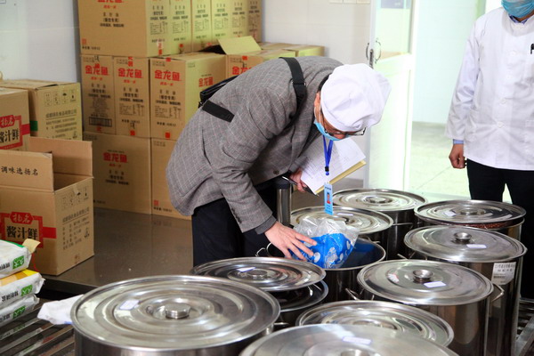 督学深入食堂后厨进行全方面检查,均得到几位督学的肯定和表扬 。