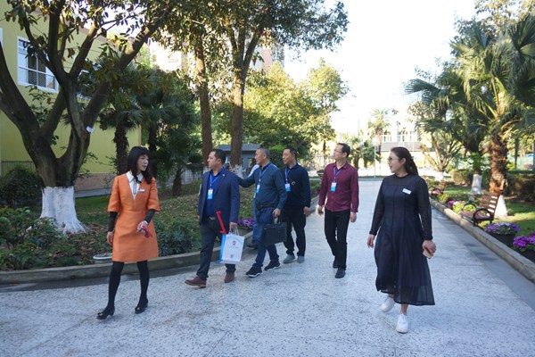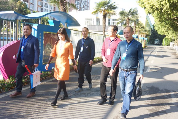 我校梅花校长、黄希正校长助理、德育处刘丽主任等领导陪同四位校长参观学校并简要介绍学校办学情况和取得的成绩。