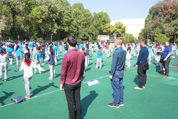 四位校长观看了我校学生大课间活动对孩子们的表现赞叹不已