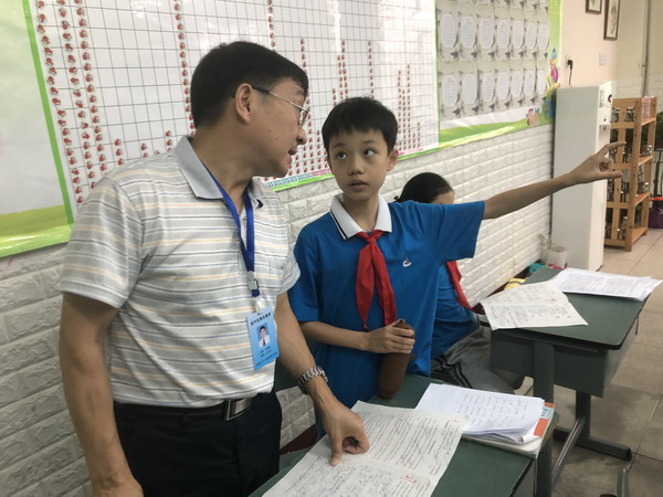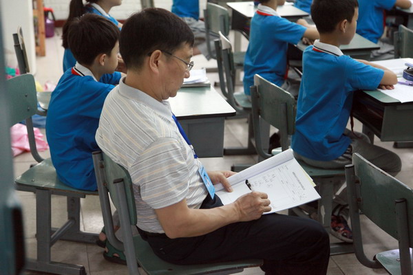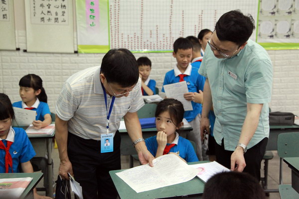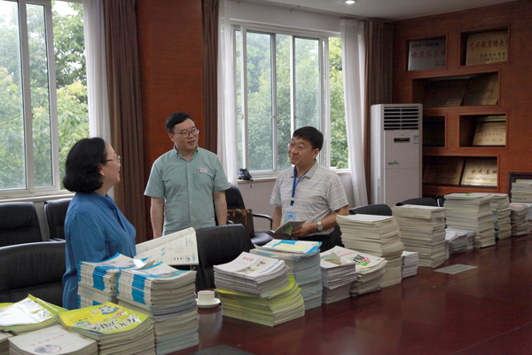 6月25日上午,金牛区政府白钟明督学到我校进行期末工作督导。白督学到校后先抽查了本期学生语、数、外学科作业,随后听了一堂语文复习随堂课,最后和何军副校长、黄希正校长助理、张勇主任进行了深入的交流座谈。