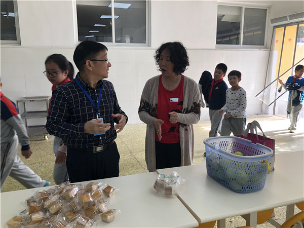 民以食为天,我校一直很重视食品安全,建立了“餐桌校长”制度,家长每周进校与学生一起就餐。白督学在此次督查中也走进了我校食堂,对学生课间食品进行了抽查。
