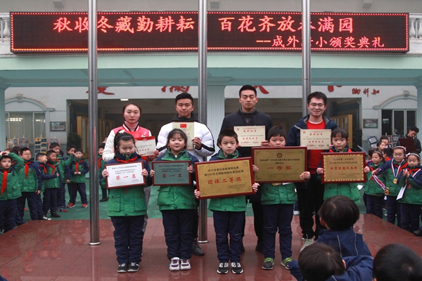 一分耕耘一分收获,同学们的收获离不开平时的练习和老师的悉心指导,各个体育校队的指导老师也获得了“优秀指导教师”的荣誉称号。同时,学校在师生们的共同努力中,获得了四川省第四届跳绳锦标赛暨2020年全国跳绳锦标赛“团体二等奖”、四川省健美操锦标赛一等奖等多项荣誉称号。