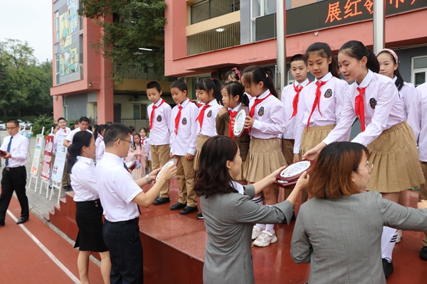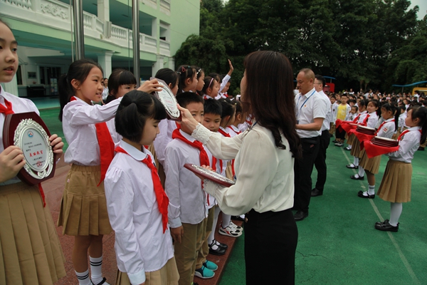 本周,一二三年级,开展了以“弘扬天府文化 传承非遗经典”为主题的集体朝会,四五六年级开展了以“展红领巾风采 做校园小主人”为主题的集体朝会。