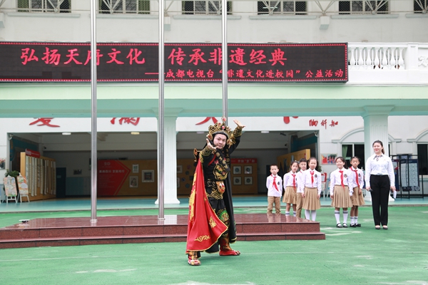 成都电视台熊猫星视界栏目邀请到非遗文化传承人漆正东老师,走进我们成外附小,带领同学们一起感受非遗文化‘川剧变脸’的魅力。