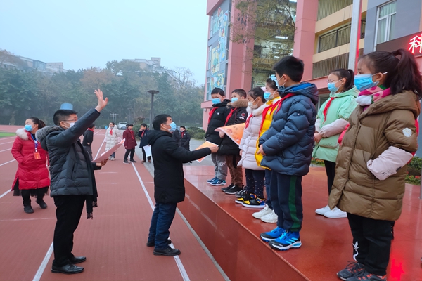 一二三年级,艾主任公布了在“爱成都•迎大运——成外附小‘七彩阳光’校园广播体操比赛”中荣获“最佳风采奖”和“最佳团队奖”的班级。学校领导为获奖班级颁发了奖状。