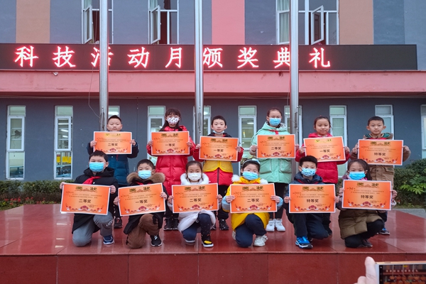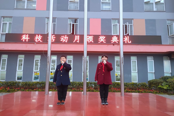 四五六年级,黄老师公布了“我和科学有个约会——科技月活动”获奖班级、“十六届成都市青少年机器人大赛(基本技能—飞行救援)项目比赛”获奖名单、“ZEATAR全球数字科普绘画比赛”获奖名单。学校领导为获奖班级和同学颁发了奖状。