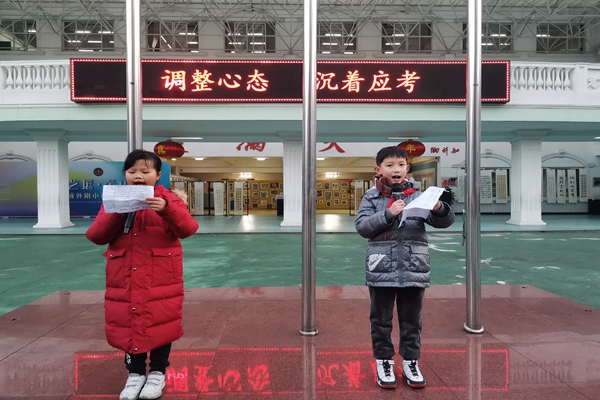在本周,我校开展以“调整心态 沉着应考”为主题的集体朝会。