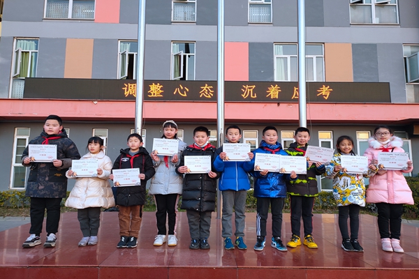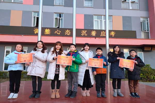 德育处黄老师在本周朝会,公布了“爱成都 迎大运”2020成都市小学生游泳锦标赛、2020金牛区中小学师生“写经典”书法比赛、第27届全国青少年爱国主义读书教育活动、第五届教师气排球比赛、第五届学生气排球比赛的获奖名单,学校领导为老师、同学们颁发了荣誉。