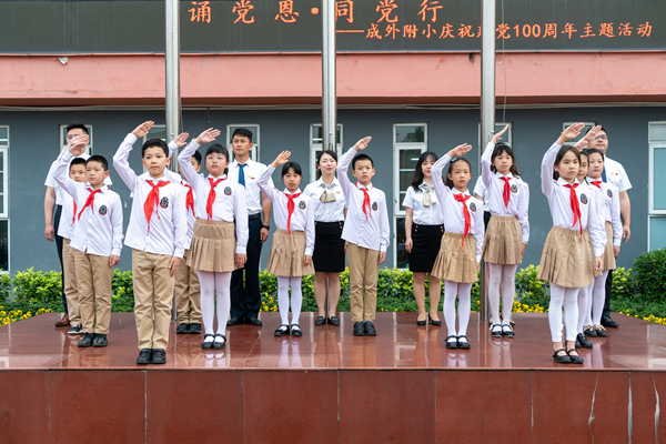 四五六年级,朱珊珊书记带领学校部分党员老师、少先队员,深情诵读原创诗《童心·同党行》,字里行间表达了对中国共产党的赞颂与热爱。今年,是建党100周年,百年征程波澜壮阔,百年初心历久弥坚。我们一起歌颂党,向党献礼。