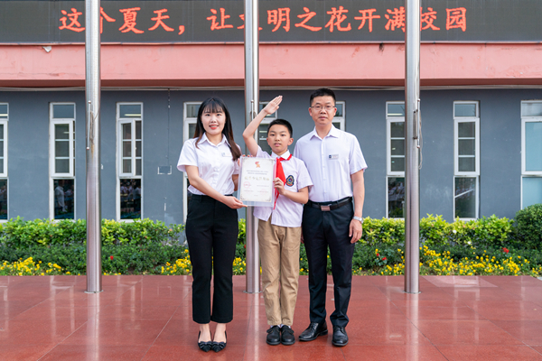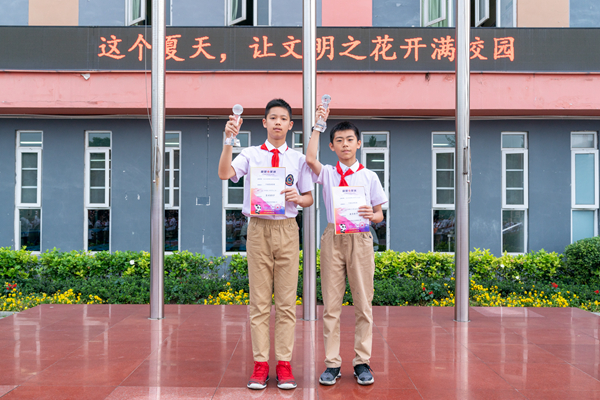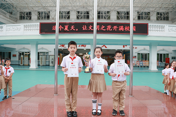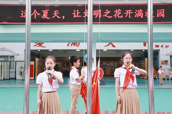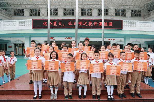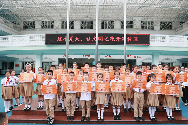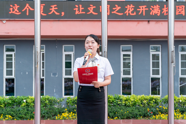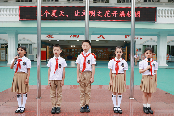 本周,我校开展了以“这个夏天,让文明之花开满校园”为主题的集体朝会。