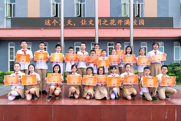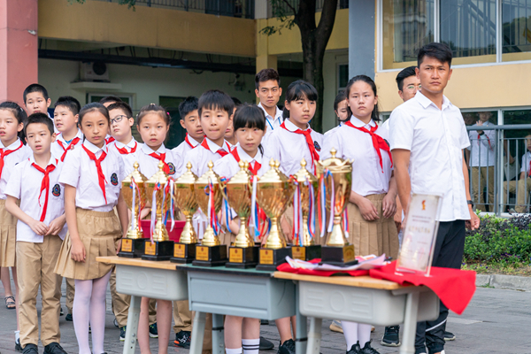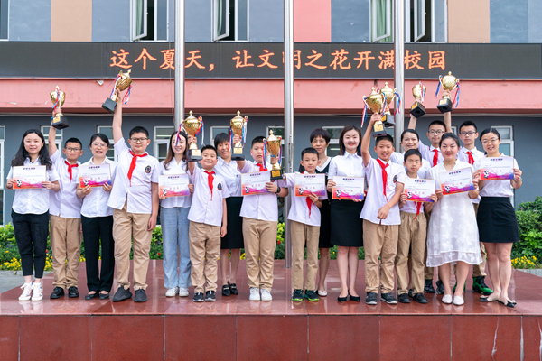 朱珊珊校长助理、艾新力主任公布了“金牛区优秀少先队集体”、“2021年成都市青少年水球锦标赛”、“成外附小春季综合运动会”、“春回暖心·劳动服务”、“我是一颗闪闪红星·社区志愿服务”等活动的获奖情况,学校领导为获奖班级及学生颁发了荣誉证书及奖杯。