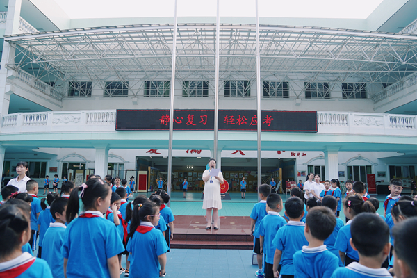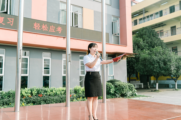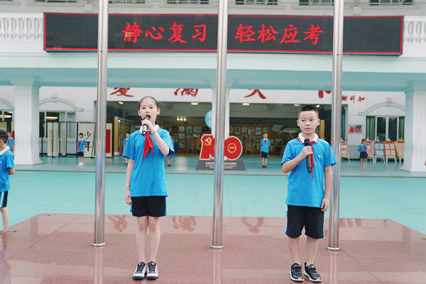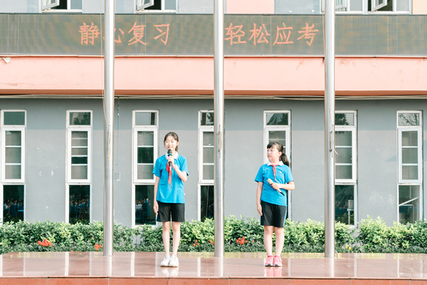 本周,学校德育处开展了以“静心复习 轻松应考”为主题的集体朝会。