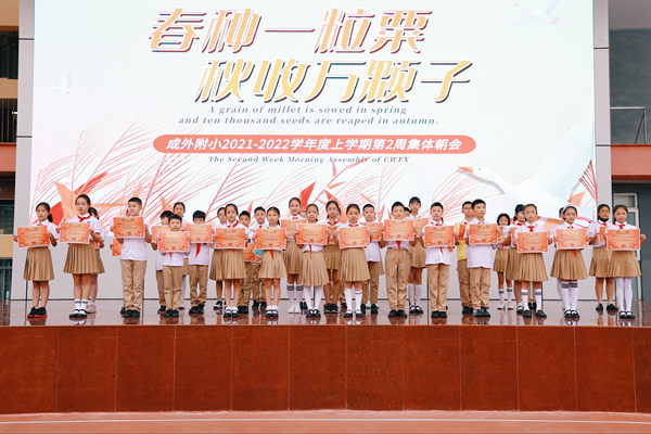 本周,我校召开了以“春种一粒粟 秋收万颗子”为主题的集体朝会。