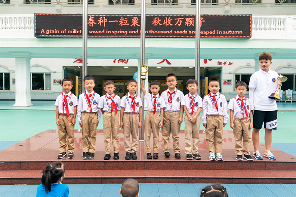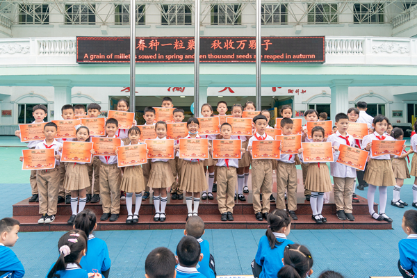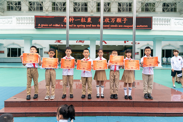 金秋九月,丹桂飘香。受一夏的阳光和雨露,上学期的花种已经收获芬芳。今天集体朝会,学校德育处就颁发了“零意外安全事故班级”、“美丽教室”、“优秀班级”等荣誉。学校行政领导为各班颁发了荣誉。