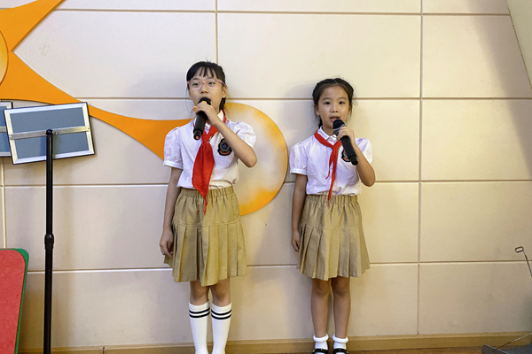 四五六年级,学校少先队大队部的委员代表“清洁、安全、个人卫生、疾病防控、班级管理”等方面向同学们发出号召,希望同学们玩耍注意安全;保护公物植物;小心秋季疾病等。