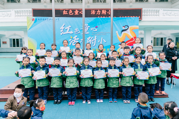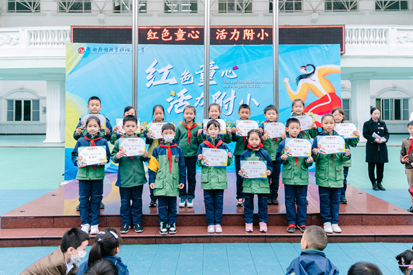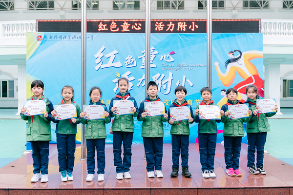 本周,我校开展了以“红色童心 活力附小”为主题的集体朝会。
