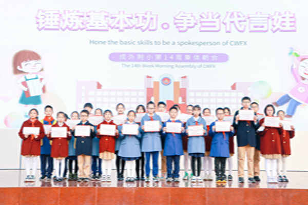 本周,我校开展了以“锤炼基本功·争当代言娃”为主题的集体朝会。