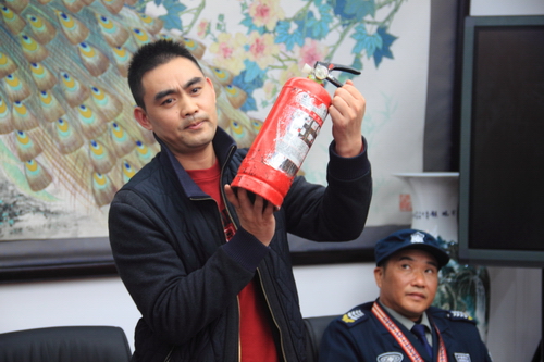 学校保安队长向老师们介绍消防知识