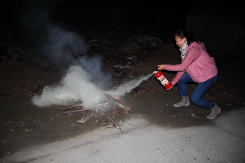 老师们练习使用灭火器
